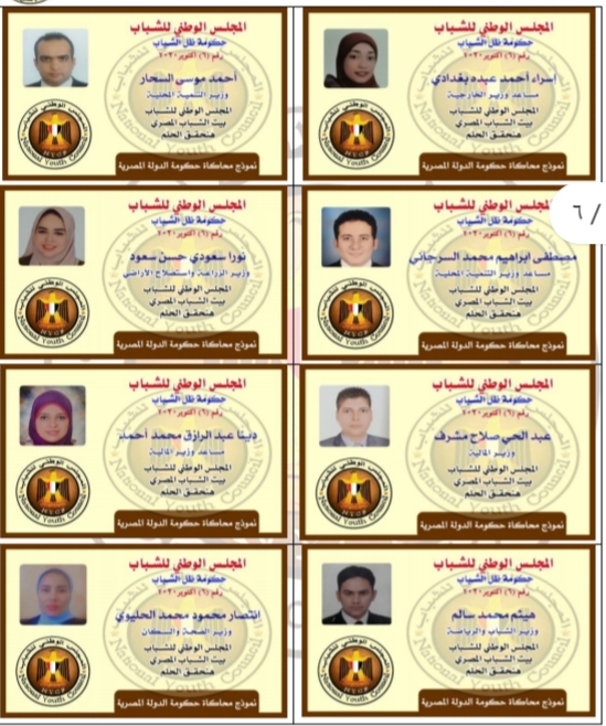 مازال المجلس الوطني للشباب حضنا يسع الجميع وحصنا يأوي الأفكار والكوادر الجادة وبيتا للشباب المصري الواعد ، تنفيذا لتوصيات سيادة الرئيس عبد الفتاح السيسي رئيس الجمهورية بإستمرار نموذج محاكاة حكومة الدولة المصرية في المؤتمر السابع للشباب بالعاصمة الإدارية بعد الإشادة بالنموذج والتوجيه بتحويل نماذج المحاكاة إلي حالة دائمة لإعداد قادة المستقبل ، فتح المجلس الوطني للشباب أحضانه للشباب المتميز والطموح لصقل خبراته ودعم رؤيته وتشجيع إبتكاراته وتعزيز خطواته الجادة الدؤوبة لتدريب الشباب وتأهيلة الي المناصب الوزارية بشكل تدريبي تثقيفي توعوي ، وعلي أثر ذلك انعقد الإجتماع الرسمي الأول لحكومة ظل الشباب رقم ٦ نموذج محاكاة الدولة المصرية يوم الأحد الموافق الخامس والعشرون من أكتوبر ٢٠٢٠ بالمجلس الوطني للشباب برئاسة السيد الدكتور وائل الطناحي الأمين العام للمجلس الوطني للشباب ، والسيدة الدكتورة دليلة مختار رئيس المجلس الوطني للشباب ،والخبيرة الدكتورة دينا المنزلاوي رئيس مجلس الوزراء بحكومة ظل الشباب وبمشاركة عدد ثلاثون من السادة الوزراء ومساعديهم ، حيث بدأ الإجتماع بالسلام الوطني لجمهورية مصر العربية ، تلاه الترحيب بالسادة الوزراء والإشادة بتميزهم وإصرارهم ، وعلي صعيد متصل قام الدكتور وائل الطناحي بالتأكيد علي أهمية الجدية والتعاون المثمر البناء بين كافة الوزراء وكذا التنسيق بينها في القضايا ذات الإهتمام المشترك وإعطاء روح الفريق الأهمية القصوي لنجاح عمل الحكومة .